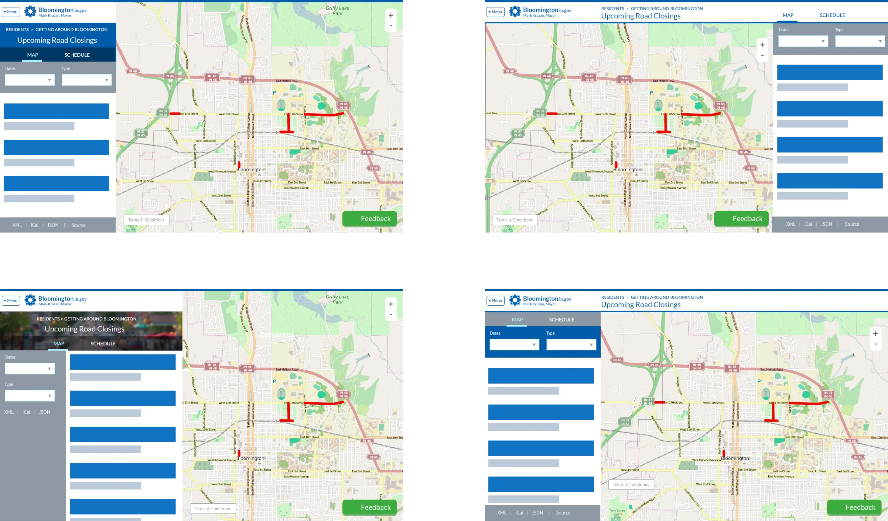 Before the redesign. The developer was tasked with proving we could layer our road closures on top of a map. After that, I smoothed out the rough edges.