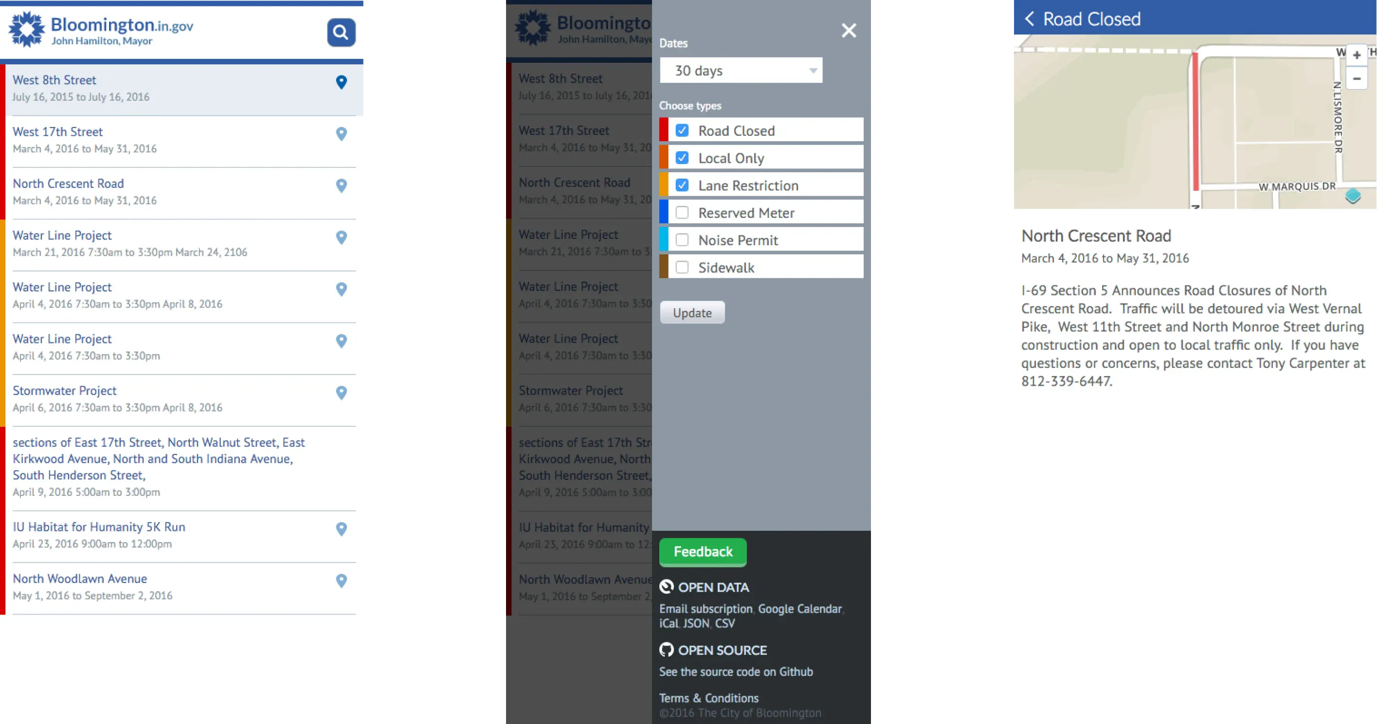 Even though the City is the official data source on which roads will close, this data was mostly used for internal processes.
